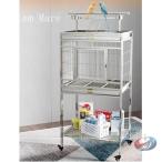 中型 ステンレス鳥かご 80×60×175cm ダブルトレイ スタンド 給餌ボウル付き C&J 回転ホイール キャスター付き 中型オウム向け 運動 遊び 飼育ケージ 頑丈