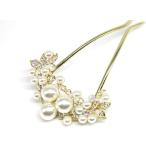ミャオミャオ 簪 かんざし バチ型 和装 留袖 金属 髪飾り パール ビジュー フラワー 花 U字 コーム(金, ワンサイズ)
