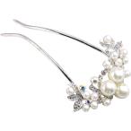 ミャオミャオ 簪 かんざし バチ型 髪飾り 和装 留袖 パール 花 Uコーム シルバー ヘアアクセサリー(シルバー, ワンサイズ)