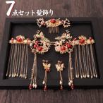 ヘアアクセサリー 髪飾り 黄金蝶と朱色玉 7点セット ヘアピン かんざし お花 花びら 華 花魁 おいらん 遊女風 舞妓 芸者風 髪飾り 結婚式 着物 和装 歌舞伎