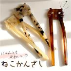 マーブル模様 猫 かんざし 二股かんざし べっ甲風 和装 レディース H7891