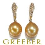 TASAKI タサキ イヤリング ゴールデンパール 真珠 12.8mm ダイヤ ダイヤモンド 0.28ct K18YG ソーティングBLJ