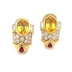 【緑屋質屋】エルメス イエローサファイア イヤリング ダイヤ・ルビー入り K18YG【中古】