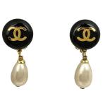 シャネル CHANEL ココマーク フェイクパール イヤリング スイング イヤリング GP ゴールド ブラック レディース 中古