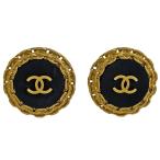 シャネル CHANEL ココマーク イヤリング CC ラウンド イヤリング GP ゴールド ブラック レディース 中古