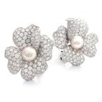 【緑屋質屋】カルティエ ハイジュエリー パエヴァイヤリング K18WG パール・ダイヤモンド【中古】