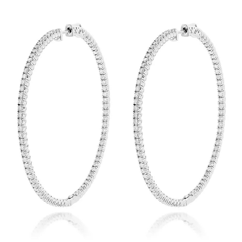 【送料無料】14K 14金 ホワイトゴールド ラージ ダイヤモンド フープ イヤリング 女性用 インサイド アウト スタイル 5カラット シングル JOERODEO 【JACOB&CO ジェイコブ アンド コー/Aqua Master アクアマスター/Joe Rodeo ジョーロデオ 正規品販売店】