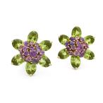 【緑屋質屋】ティファニー マルチストーン イヤリング ダイヤ・アメジスト・ペリドット K18YG【中古】