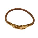 美品 HERMES エルメス アタメ レザーブレスレット ゴールドカラー ブラウン レディース 古着 中古