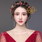 ウェディング ヘアバンド イヤリング 2点 カチューシャ レッド 小枝 結婚式 二次会 花嫁 ブライダル 発表会 髪飾り ヘッドドレス 演奏会 パーティー ドレス小物