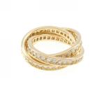 カルティエ 指輪 レディース スリーバングルズ トリニティ フルダイヤ リング 53号 ゴールド Cartier 750YG×WG×PG 中古