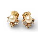 クリスチャンディオール Christian Dior イヤリング アクセサリー 両耳用 クリップ式 パール 真珠 ラインストーン 15mm シルバー色