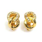 美品 Christian Dior クリスチャンディオール ラインストーン クリップ イヤリング GP ゴールドカラー レディース 古着 中古