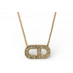 クリスチャンディオール Christian Dior ロゴ ラインストーン ネックレス GP ゴールド レディース 中古