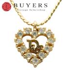 クリスチャンディオール Christian Dior ロゴ ラインストーン ネックレス ハート ネックレス GP ゴールド レディース 中古