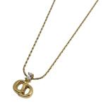中古 クリスチャンディオール ネックレス ロゴ メタル ラインストーン ゴールド メッキ GP アクセサリー レディース 女性