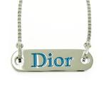 Christian Dior クリスチャンディオール メタル Diorロゴ プレート ネックレス シルバー ブルー 483464 ネックレス