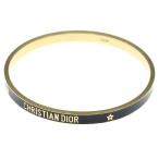 クリスチャンディオール Christian Dior ブレスレット アクセサリー バングル レザー ロゴ 刻印 ゴールド色 黒 ブラック ■GY18 /MQ ■OH