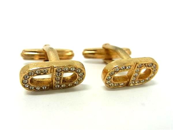 ChristianDior クリスチャンディオール ラインストーン カフス カフリンクス アクセサリー ゴールド系 DE7045 冠婚葬祭 結婚式 葬式