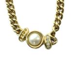 クリスチャンディオール Christian Dior ネックレス アクセサリー ロゴ フェイクパール ラインストーン ゴールド色 ■GY11 /MQ ■OH