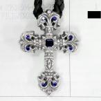 CHROME HEARTS クロムハーツ フィリグリークロス XS ペンダント ブルー サファイア レザーブレイド ネックレス インボイス原本付属 本物