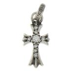 クロムハーツ CHROME HEARTS CRS BBYFAT P DMN ベビーファット クロス チャーム パヴェ ダイヤモンド ペンダント トップ 925 シルバー☆AA