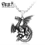 メンズ 男性 ペンダント サージカル ステンレス 316L 飛ぶ ドラゴン ネックレス ファッション ビーズ 人気