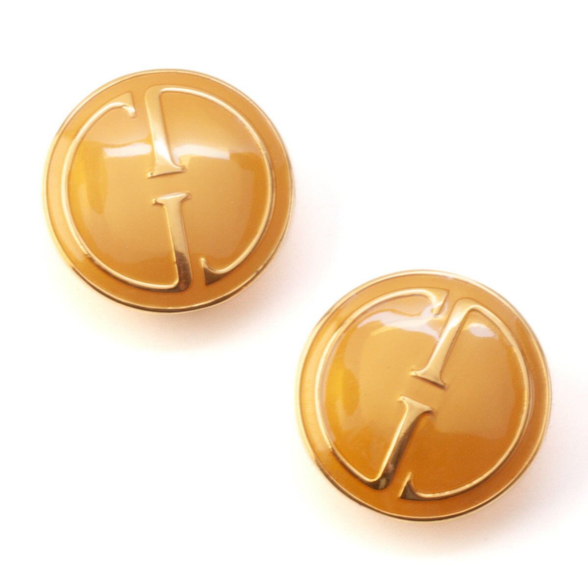 【1994年製】オールド グッチ イヤリング Gロゴ 大ぶり 3.5cm ヴィンテージ ゴールド×オレンジ #39149yr 【中古】