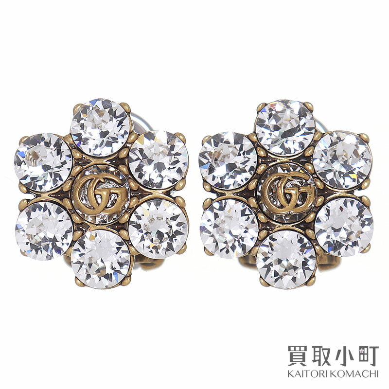 【最大3万円OFFクーポン! 3/4 20時〜】【未使用品】グッチ【GUCCI】クリスタル ダブルG イヤリング エイジングゴールド クリップ ラインストーン アクセサリー ファッションジュエリー 645685 J1D50 8062 GG EARRINGS WITH CRY【中古】