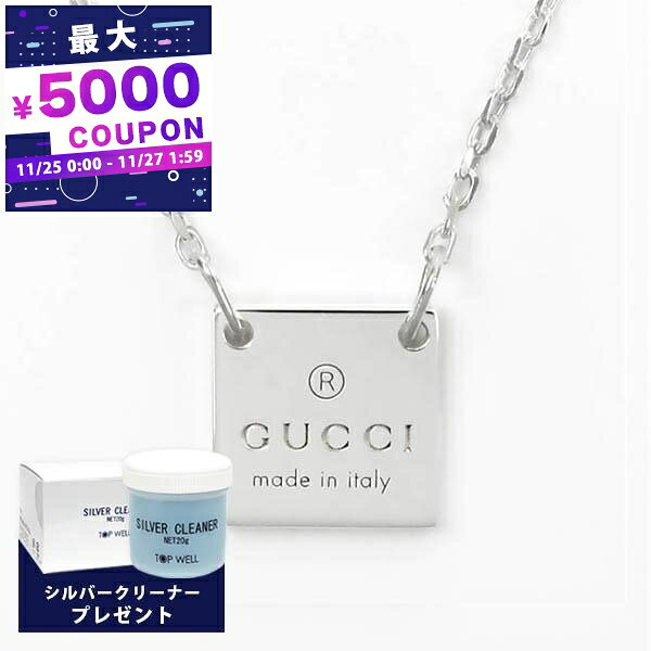 《最大5000円クーポン 11/27 1:59迄》\今ならシルバークリーナープレゼント/ グッチ ネックレス GUCCI メンズ スクエア プレート ペンダント シルバー 223514 J8400 8106 | ブランド