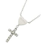 グッチ ネックレス レディース 1Pダイヤ ハート クロス ホワイトゴールド プチペンダント GUCCI 750WG K18WG 中古