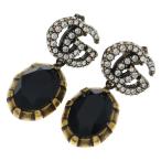 GUCCI グッチ ダブルG ラインストーンピアス GP ブラック×ゴールド 13.2g