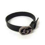 グッチ ブレスレット GGマーモント レザー - シルバー金具 ブラック バングル アクセサリー 記念日【本物保証】