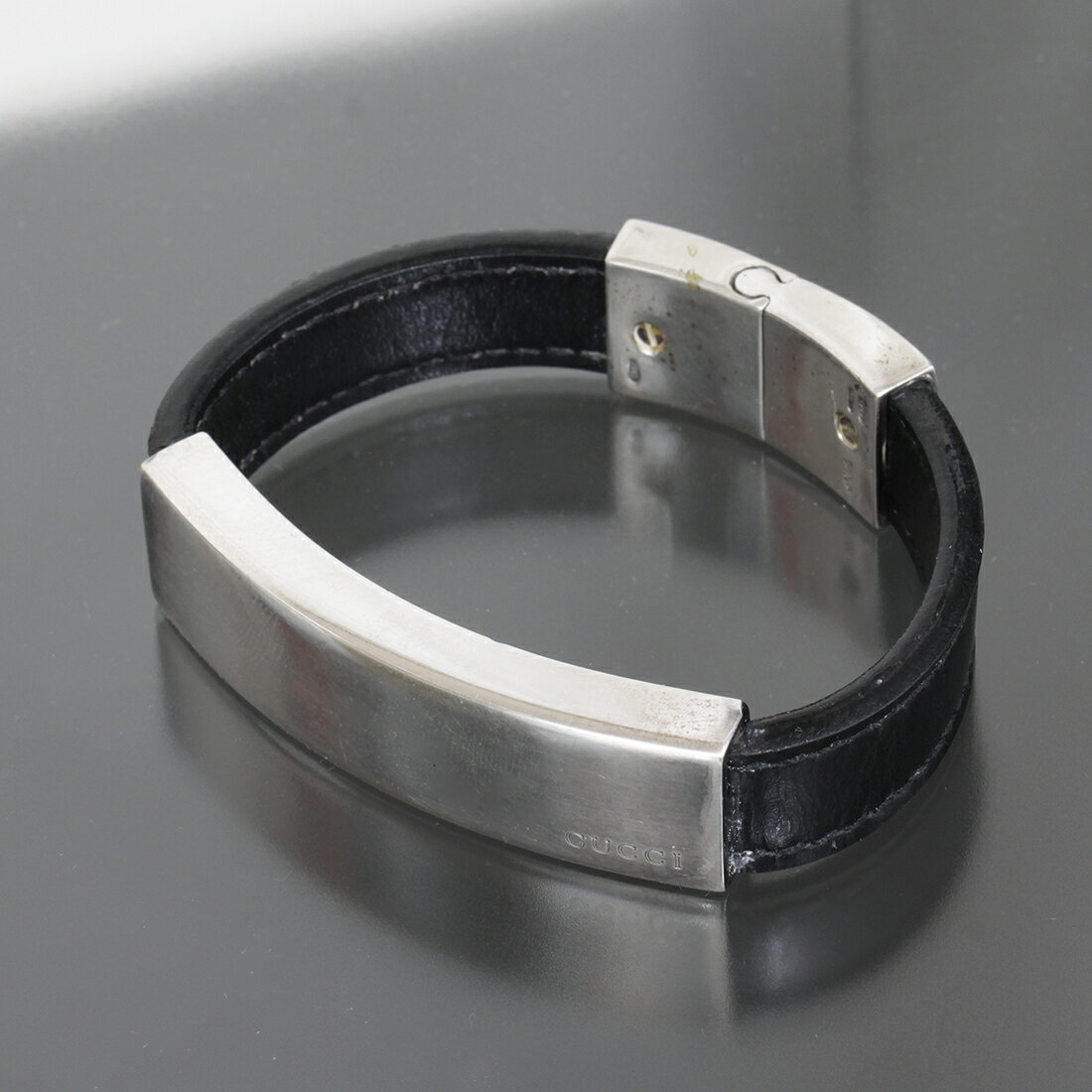 GUCCI グッチ SVブレスレット ラバー×プレート/シルバー/925 シルバーカラー×ブラック メンズ