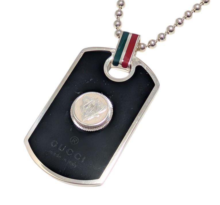 グッチ ネックレス ドッグタグ ペンダント クレスト 272860 ブラック シェリーカラー シルバー ボールチェーン メンズ SV925 GUCCI 【中古】