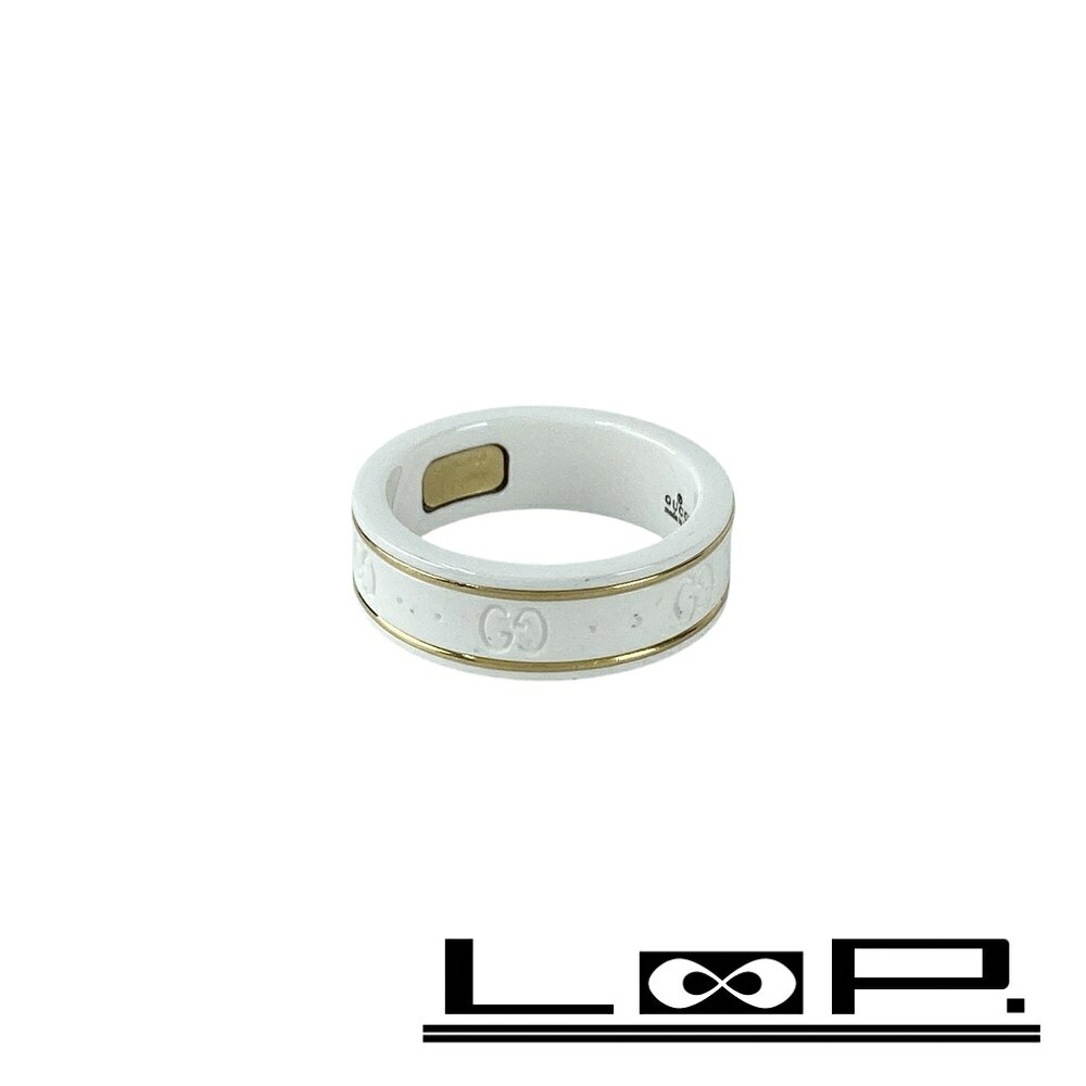 グッチ ■中古■ アイコン リング 指輪 GG ゴールド ホワイト 750 セラミック #19 【506222】1