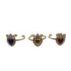 美品 グッチ クリスタルハート 3連 642102 GP ゴールド レッド ブルー リング 指輪 1210【中古】GUCCI