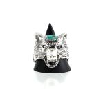 グッチ リング メンズジュエリー シルバー925 アンガーフォレストウルフヘッド トルコ石 サイズ22 約20.5号 アニマルモチーフ 指輪 アクトワン