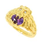 [中古] グッチ K18YG ライオンヘッド アメシスト リング #13刻印 12号位 イエローゴールド ダイヤモンド パープル オーバル 指輪 GUCCI