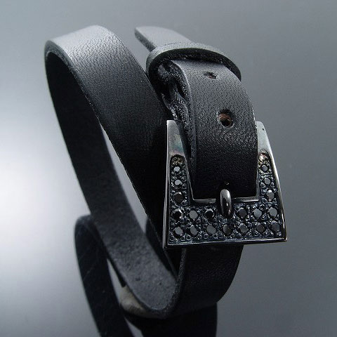 KENBLOOD ケンブラッド パヴェストーンシルバーバックル レザーブレスレット ブラック 【KL-02】【メンズモデル】