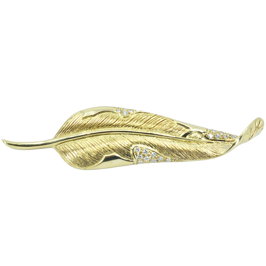 ミキモト MIKIMOTO K18 フェザー 羽 ブローチ ゴールド K18 ダイヤモンド レディース ジュエリー/宝石/宝飾品/貴金属 /コサージュ/ラペルピン/飾りピン/バッジ 【中古】