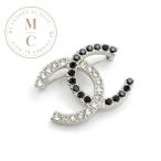 シャネル CHANEL ブローチ コサージュ シルバー ブラック ココマーク ラインストーン