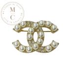 シャネル CHANEL ブローチ コサージュ ゴールド ココマーク ラインストーン パール