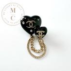 シャネル CHANEL ブローチ コサージュ ブラック ゴールド ココマーク ラインストーン チェーン ハート