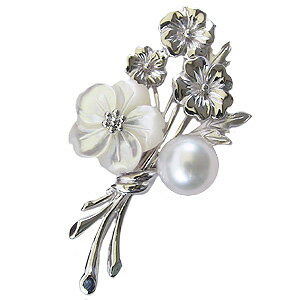 【10%OFF 12/11 1:59まで】パール ブローチ コサージュ フォーマル 花 フラワー 3WAY ピンブローチ 南洋白蝶真珠 10mm 白蝶貝 シルバー 送料無料 人気 おすすめ プレゼント ギフト ジュエリー クリスマス