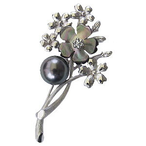 【10%OFF 12/11 1:59まで】パール ブローチ コサージュ フォーマル 花 フラワー 南洋白蝶真珠 10mm 黒蝶貝 シルバー 送料無料 プレゼント ギフト ジュエリー クリスマス