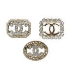 CHANEL シャネル メタル ラインストーン ココマーク 3点セット ブローチ レディース 中古 美品