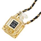 シャネル パフュームボトル No.5 チェーン ペンダント ネックレス 香水 ゴールド ブラック メッキ レザー ガラス CHANEL 【中古】