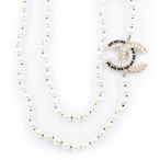 (新品・未使用品)CHANEL シャネル AB9084 チェーン ココマーク パール ラインストーン ホワイト シャンパンゴールド ブラック ロング ネックレス 箱付