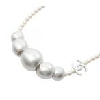 CHANEL シャネル ココマーク パール ラインストーン ロング ネックレス シルバー メタル A23V アクセサリー